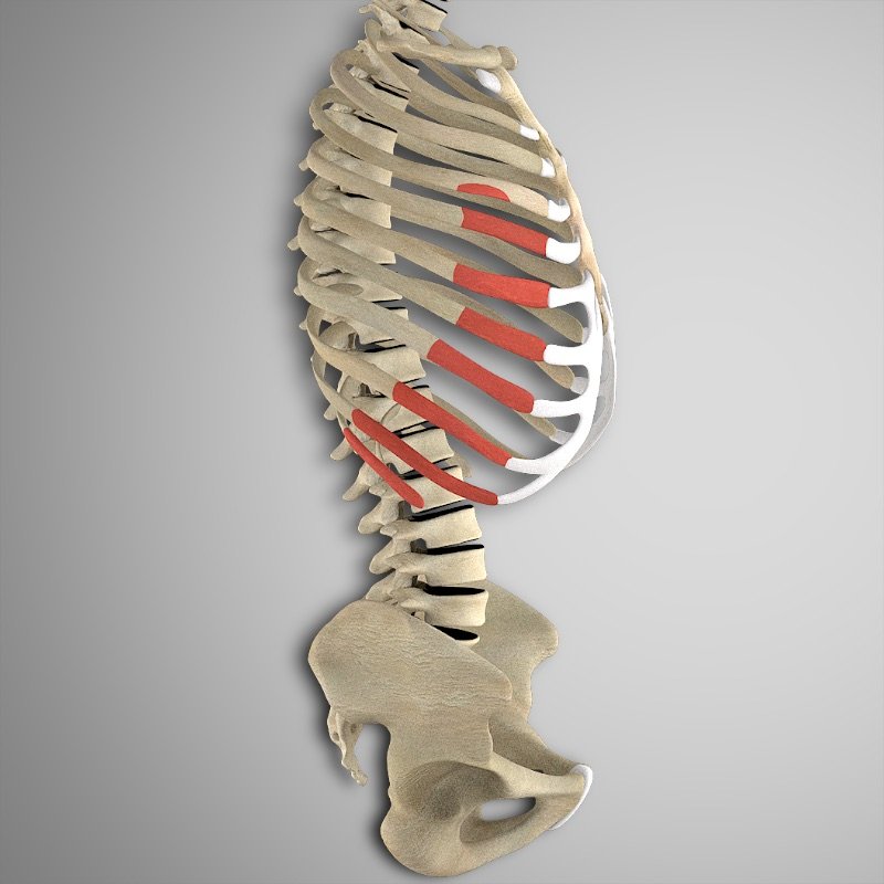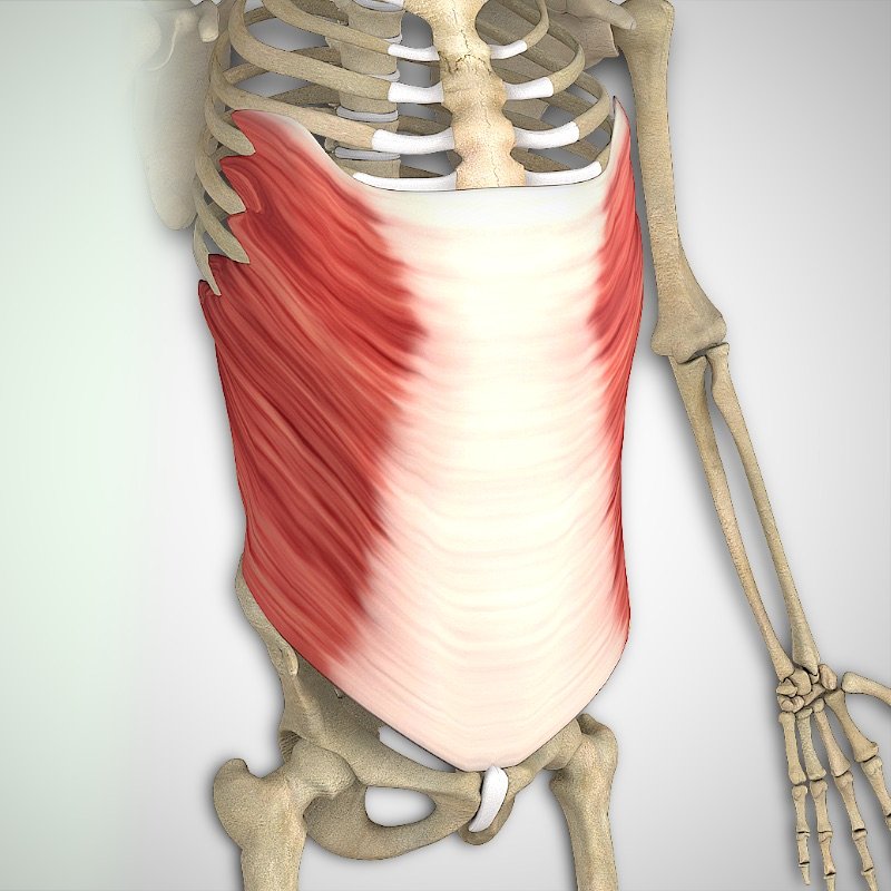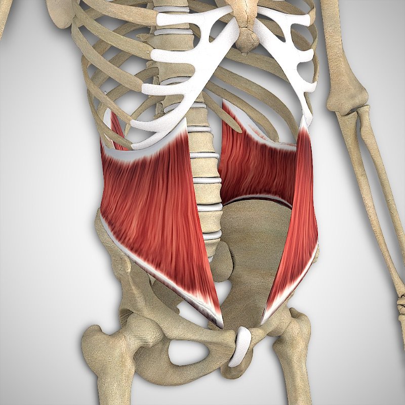 Oblícuos externos (unilateralmente): flexiona lateralmente el tronco y rota el tronco hacia el lado opuesto.
