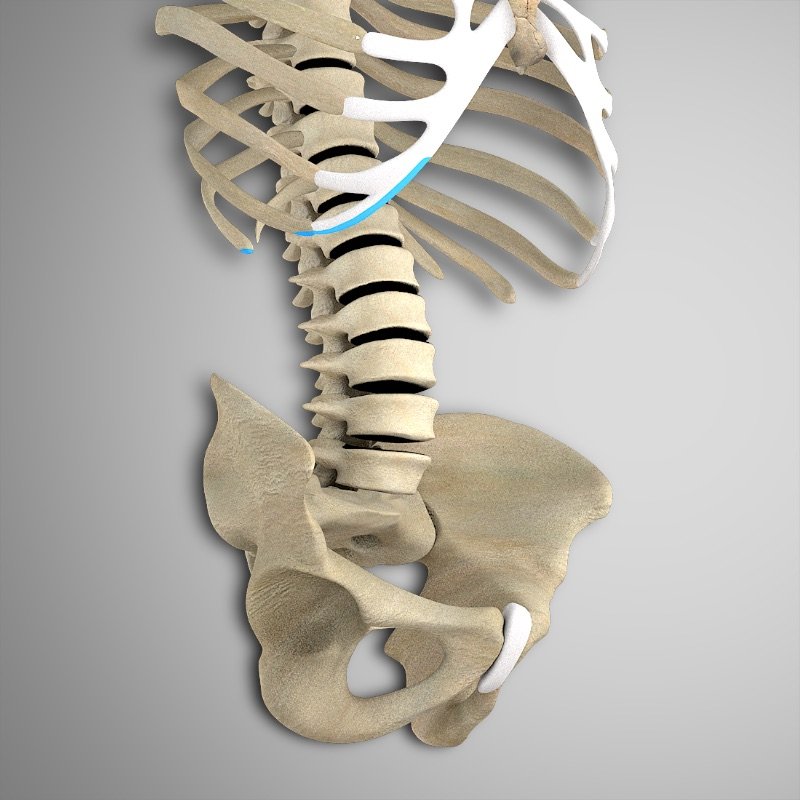 Superficie interna de los cartílagos costales de las 4 costillas inferiores