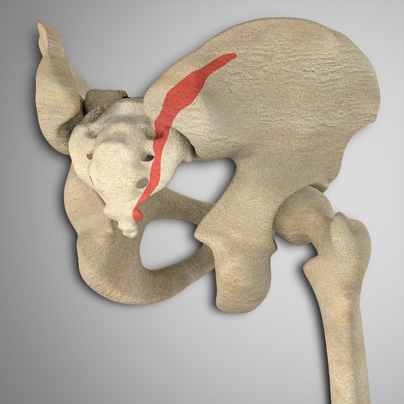 Sacro posterior, ilion posterior y línea glútea superior
