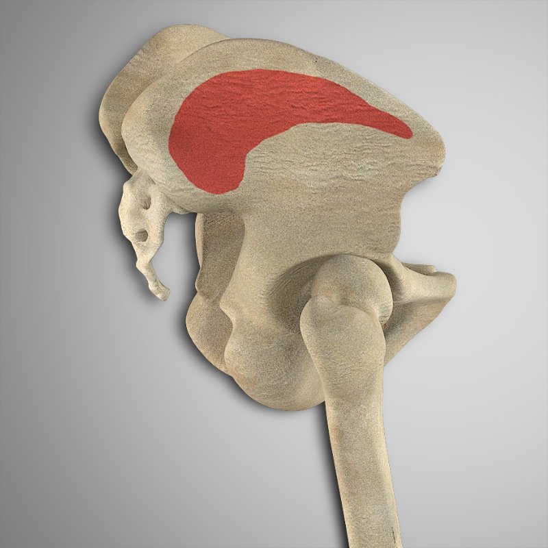 Glúteo medio: ilion posterior entre las líneas glúteas superior y media