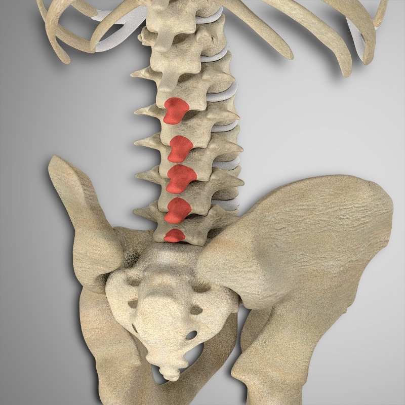 Apófisis espinosas de todas las vértebras lumbares