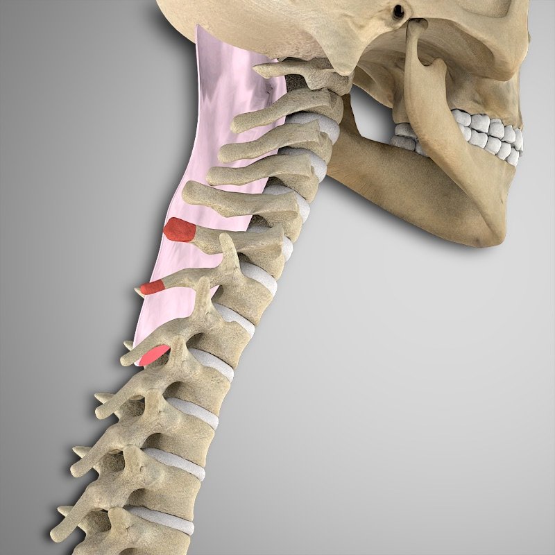 Columna cervical: ligamento nucal y apófisis espinosas de las vértebras C6 o C7